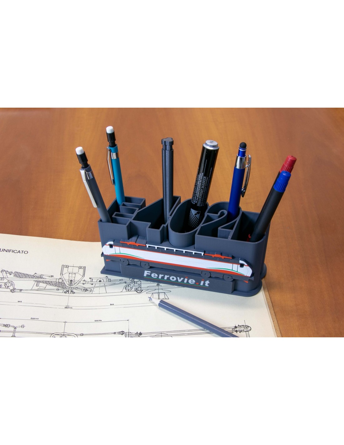 La scritta E402B funge da contenitore per penne, pennarelli, matite, pennelli e altri oggetti di uso comune che si trovano sulle nostre scrivanie di lavoro o studio.