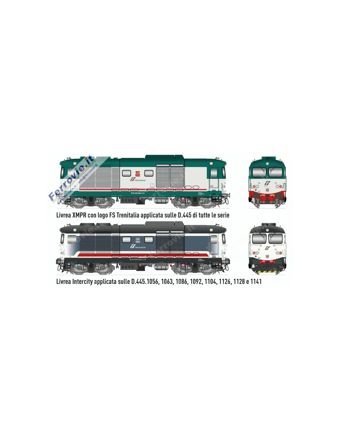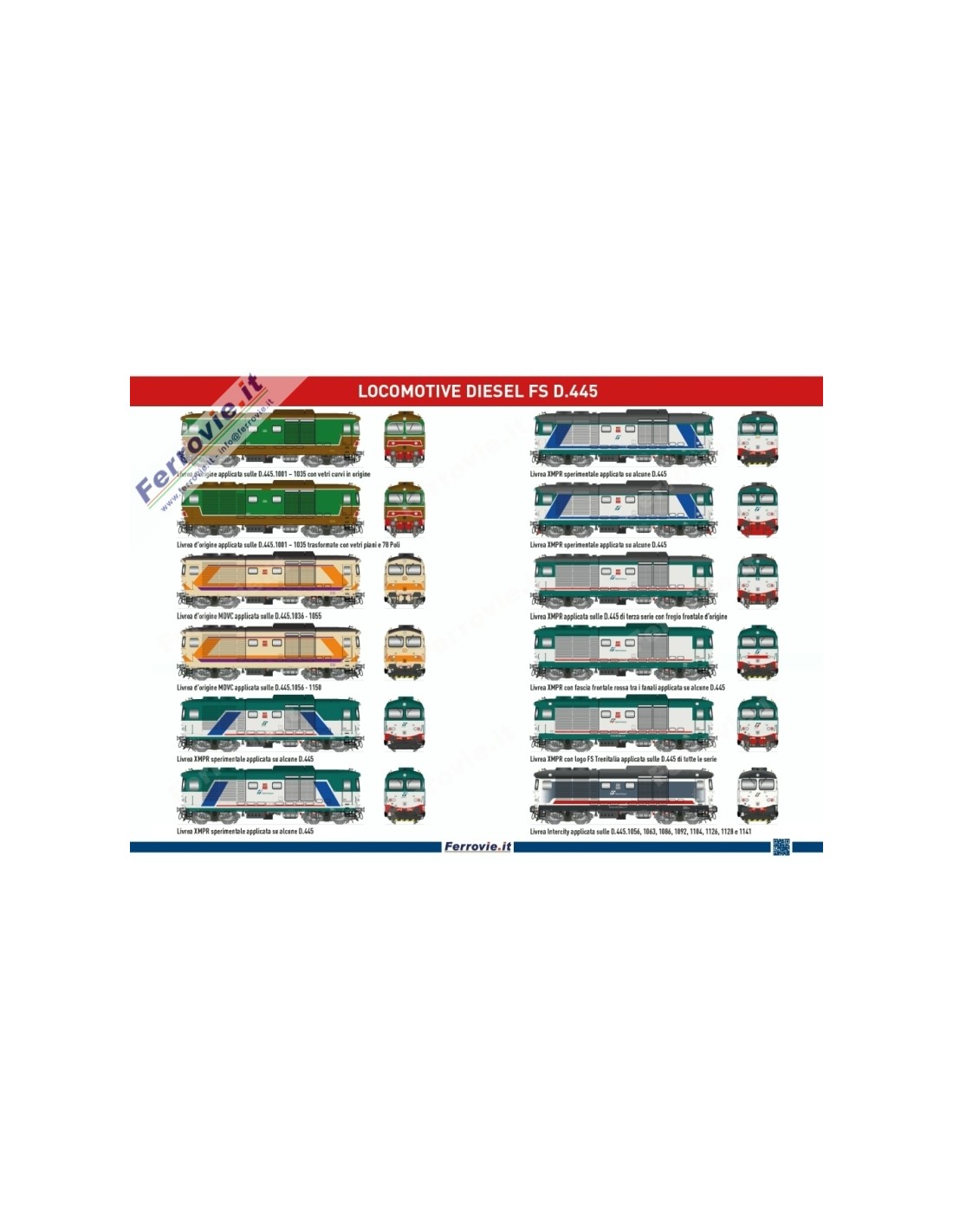 Figurini dettagliati a colori in alta qualità delle locomotive nelle livree applicate negli anni