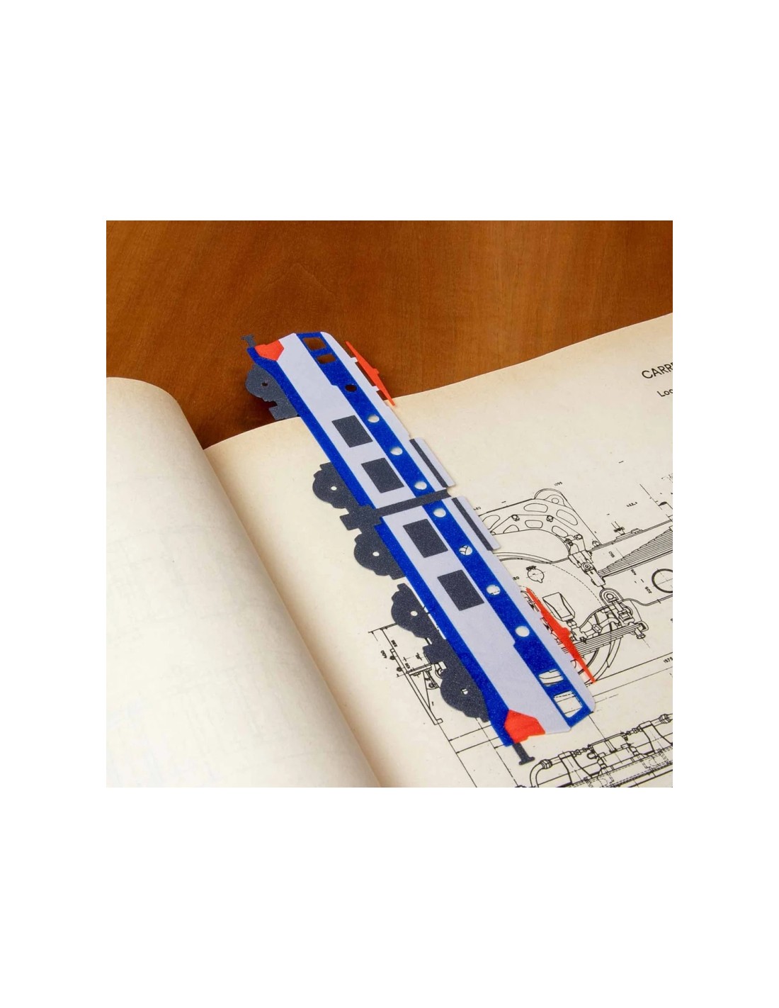 La fessura presente in prossimità del carrello anteriore e posteriore permette di fissare il segnalibro tra le pagine mantenendolo in posizione quando si riapre il libro.