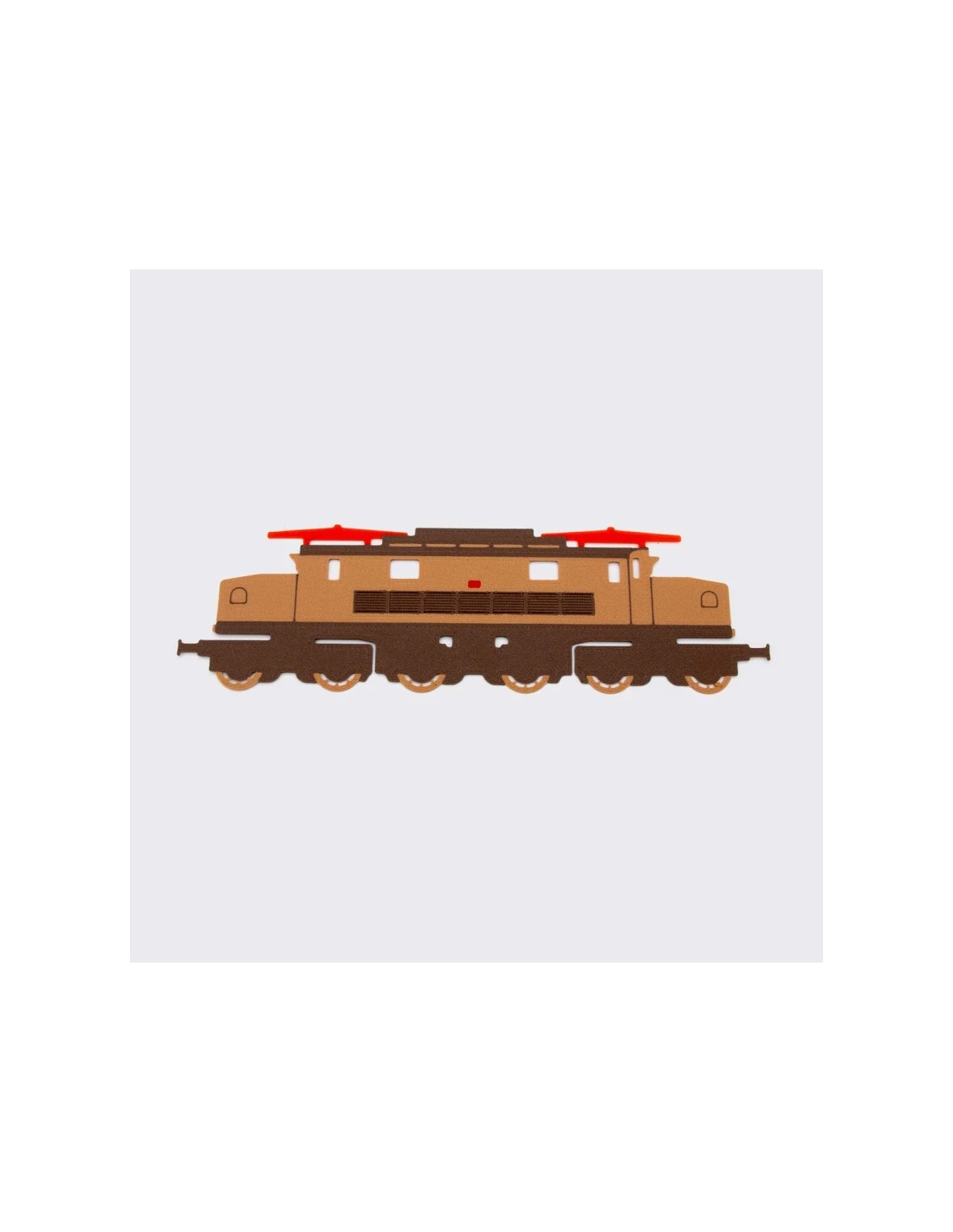 Lamina in plastica molto sottile, solo 0,4 mm di spessore, ma resistente e flessibile, riproduce la forma della famosa locomotiva elettrica E626 della FS nella livrea storica, in esatta scala 1:87